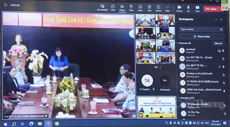 | Bà Nguyễn Thị Kim Ngọc- Phó Giám đốc Sở Công Thương Thành phố Hồ Chí Minh phát biểu trực tuyến từ đầu cầu Thành phố Hồ Chí Minh |