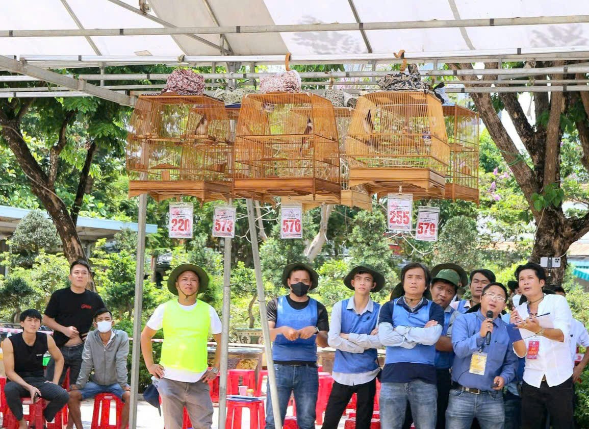 | Ban giám khảo tiến hành chấm điểm tại cuộc thi chim chào mào. Ảnh: Nguyễn Tuấn |