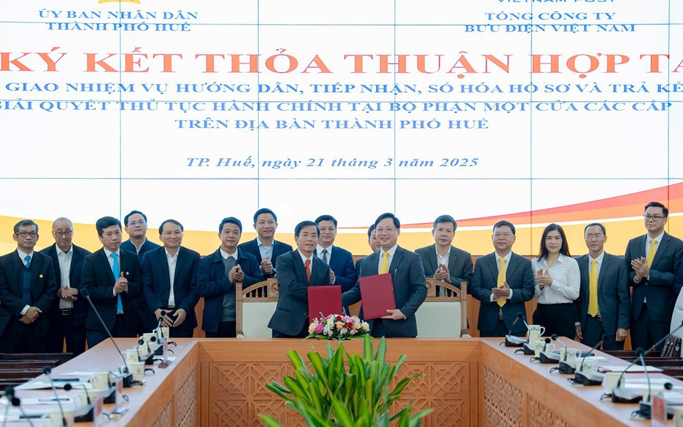 Ngày 21/3, UBND thành phố Huế và Tổng công ty Bưu điện Việt Nam ký kết thỏa thuận hợp tác chuyển giao nhiệm vụ hướng dẫn, tiếp nhận, số hóa hồ sơ và trả kết quả giải quyết thủ tục hành chính tại bộ phận một cửa các cấp trên địa bàn thành phố Huế.