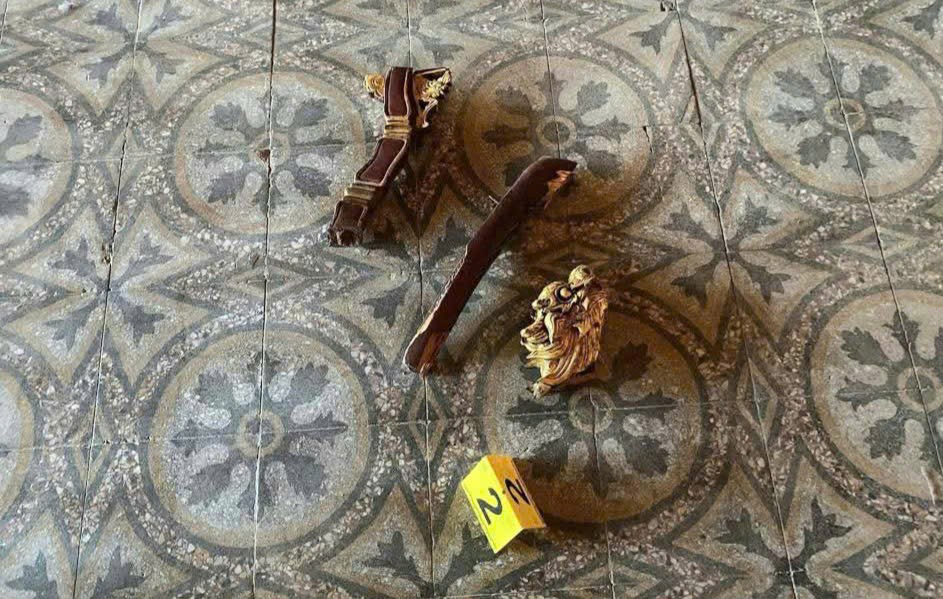 | Những hiện vật ngai vàng bị hự hại được cho là do đối tượng Tâm gây ra (Ảnh: C. Thái) |