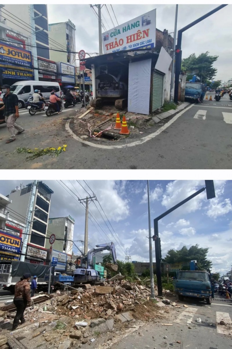 Cụ thể, ngày 25/9, lực lượng chức năng quận Tân Phú (TP. Hồ Chí Minh) đang tháo dỡ căn nhà 4 mặt tiền tại giao lộ Lũy Bán Bích - Âu Cơ - Ba Vân, phường Tân Thành.