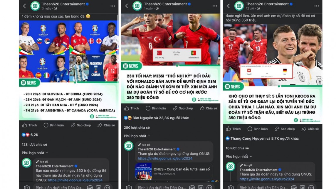 Nội dung trong bài ghim thể hiện: “Dự đoán nhà vô địch Euro 2024, tổng giải thưởng 350 triệu đồng. Chỉ còn ít giờ nữa là trận khai mạc Euro 2024 sẽ chính thức diễn ra, cùng thưởng thức ngày hội bóng đá lớn nhất trong năm và cơ hội ẵm giải thưởng lên đến 350 triệu đồng. Giải thưởng chỉ giành cho người dự đoán chính xác và sớm nhất. Tham gia ngay sự kiện ở link bên dưới bình luận”.