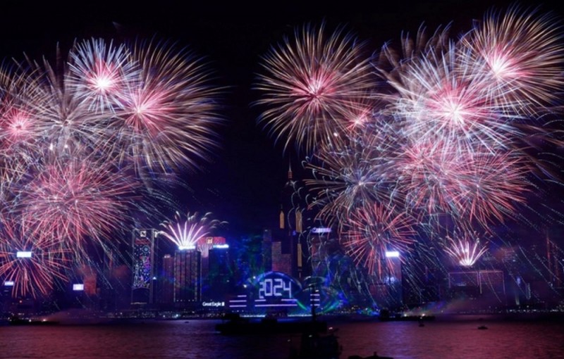 Tại Bắc Kinh, Trung Quốc, người dân tham gia sự kiện đón năm mới tại Công viên Shougang. Trong khi đó ở Hong Kong, người dân đón năm 2024 với màn trình diễn pháo hoa rực rỡ.