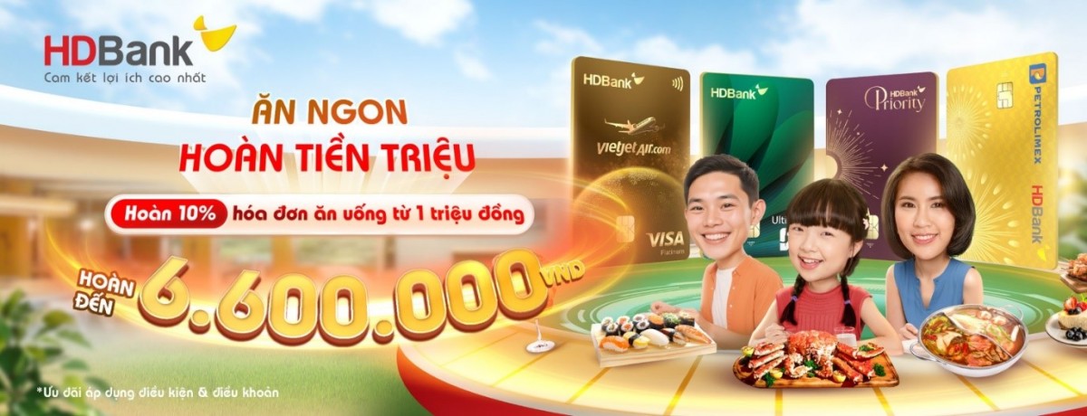 Là tín đồ ẩm thực? HDBank mang đến chương trình “Ăn ngon hoàn tiền triệu”, hoàn tiền 10% tối đa 300.000 đồng, đồng thời giảm trực tiếp thêm đến 20% khi dùng thẻ HDBank.