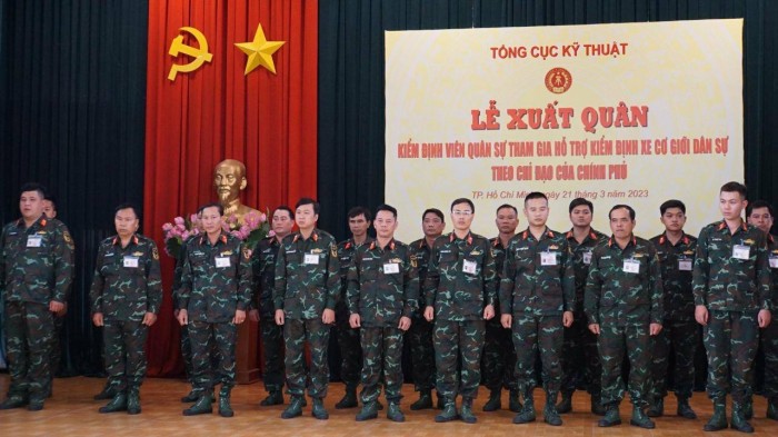 Tổng cục Kỹ thuật (Bộ Quốc phòng) vừa phối hợp với Cục Đăng Kiểm Việt Nam (Bộ Giao thông Vận tải) tổ chức lễ xuất quân và bàn giao kiểm định viên quân sự tham gia hỗ trợ kiểm định xe cơ giới dân sự theo chỉ đạo của Chính phủ. Theo đó, 19 kiểm định viên quân sự (gồm 17 nhân sự chính thức, 2 dự bị) đã được điều động, bổ sung cho 8 trung tâm đăng kiểm tại TP.HCM và hai tỉnh Đồng Nai, Bình Dương.