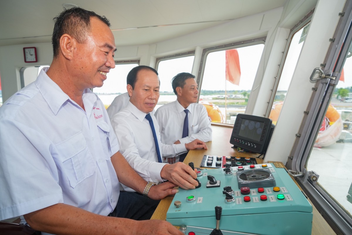 | Ủy viên Ban Chấp hành Trung ương Đảng, Trưởng ban Ban Kinh tế Trung ương Trần Lưu Quang thăm quan phà |