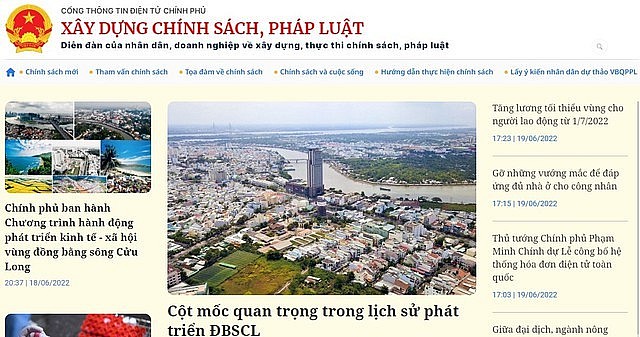 Kịp thời và thiết thực thực hiện chỉ đạo của Thủ tướng Chính phủ tại Quyết định số 407/QĐ-TTg, ngày 30/3/2022 và Văn bản số 301/TTg-PL, Cổng thông tin điện tử Chính phủ đã nghiên cứu, xây dựng mới và đưa vào vận hành chuyên trang Xaydungchinhsach.chinhphu.vn, là một trang thành phần nằm trong hệ sinh thái truyền thông của Cổng Thông tin điện tử Chính phủ.