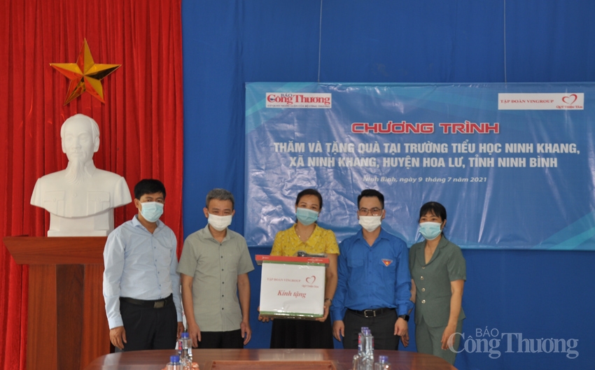 Chuyến đi này, đoàn công tác xã hội của Báo Công Thương phối hợp với Quỹ Thiện Tâm (Tập đoàn Vingroup) đã trao tặng 05 bộ máy tính để hỗ trợ việc giảng dạy và học tập của thầy trò trường Tiểu học Ninh Khanh.