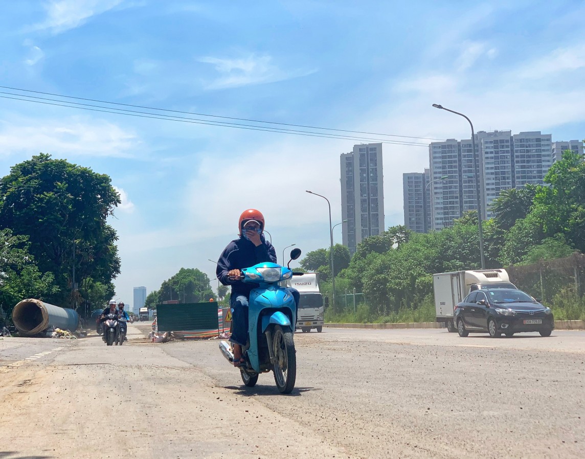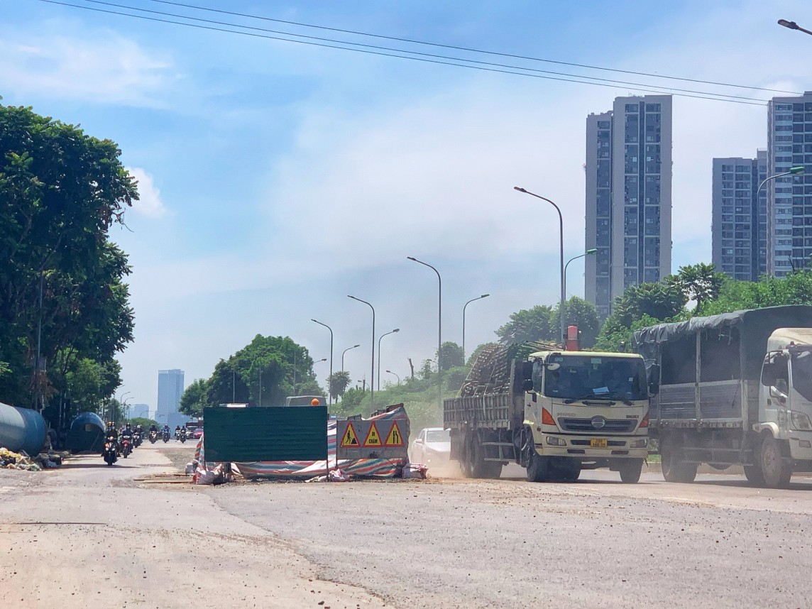 Được biết, đường gom Đại lộ Thăng Long được rào chắn nhiều vị trí, đào xới bề mặt phục vụ thi công công trình. Tình trạng bụi mù mịt trên đường Đại lộ Thăng Long kèm theo ùn tắc cục bộ thường xuyên xảy ra trong giờ cao điểm.