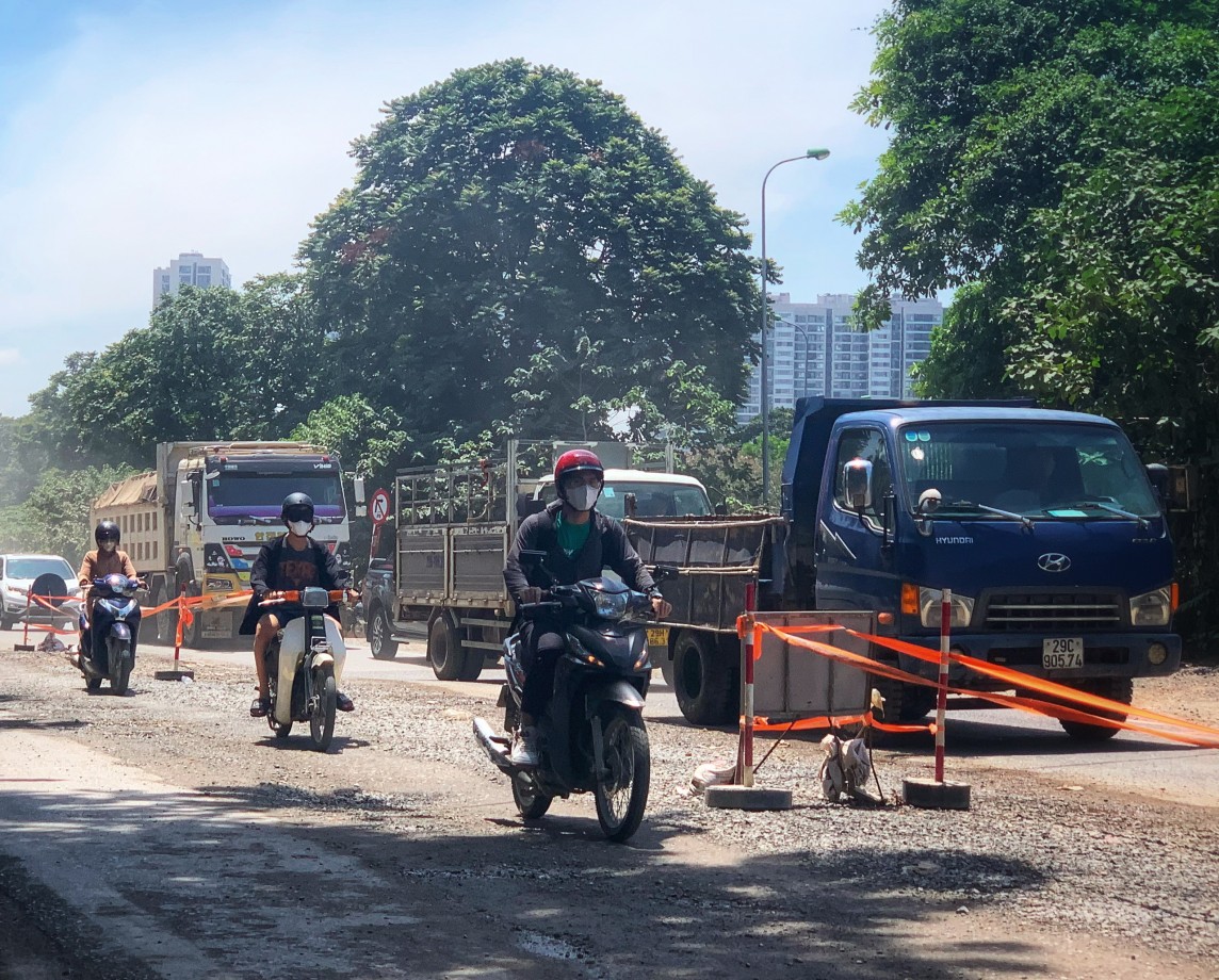 "Ngày nào tôi cũng lưu thông trên tuyến đường này. Hôm thì đơn vị thi công rào chắn, thi công ở hầm chui An Khánh, hôm lại An Thương, mỗi hôm đào một khúc khiến tuyến đường trở nên nham nhở", anh Nguyễn Ngọc Tùng chia sẻ.
