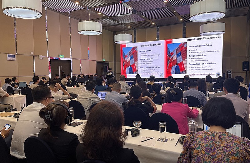 Hội thảo "Thị trường ASEAN: Từ các sáng kiến đến hành động" nhằm cung cấp cho các doanh nghiệp vừa và nhỏ Việt Nam về các xu hướng chính trong thương mại nội địa ASEAN và tận dụng các cơ hội vào thị trường nội khối này.
