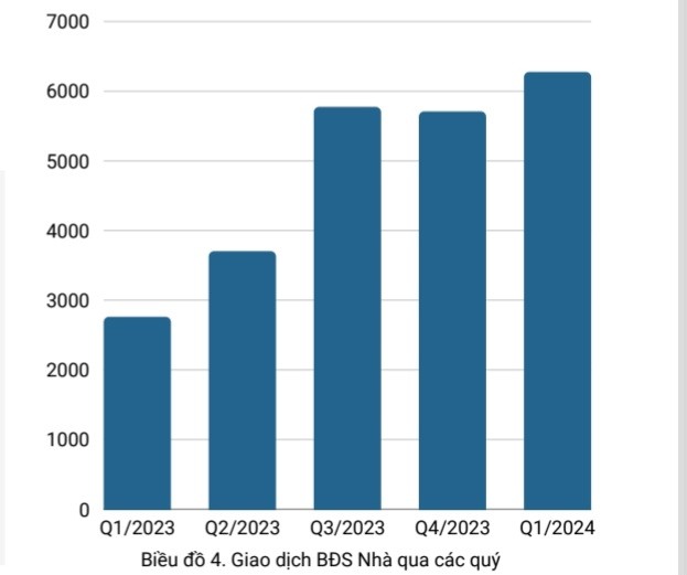 | Lượng giao dịch bất động sản nhà ở trong quý I/2024 tăng so với các quý của năm 2023 |