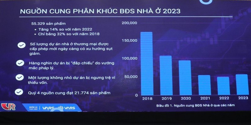 | Thống kê nguồn cung phân khúc bất động sản nhà ở năm 2023. (Nguồn VARS) |