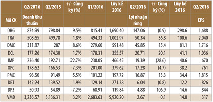 Nhóm doanh nghiệp dược còn lại ghi nhận kết quả kinh doanh đan xen, như CTCP Dược phẩm OPC và CTCP Dược phẩm Bến Tre (DBT) ghi nhận sự sụt giảm nhẹ về lợi nhuận, còn CTCP Dược phẩm Dược liệu Phamedix (PMC), CTCP Dược phẩm Trung ương 3 (DP3) và CTCP Y Dược phẩm Vimedimex (VMD) ghi nhận mức tăng so với cùng kỳ. Các cổ phiếu này cũng đều ghi nhận mức tăng giá rất tốt, chẳng hạn DP3 tăng 70,6% từ đầu năm đến nay, DBT tăng 23,6%, OPC tăng 9%; PMC tăng 40%; VMD tăng 11%.