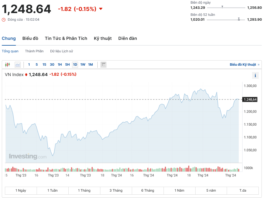 Nhóm cổ phiếu vừa và nhỏ đã tăng hết biên độ, tuy nhiên, VN-Index vẫn giảm 1,82 điểm, tương đương 0,15% xuống còn 1.248,64 điểm.