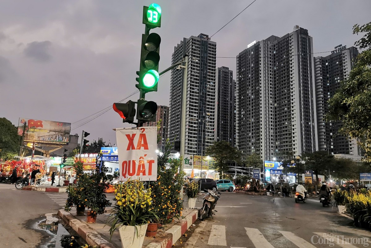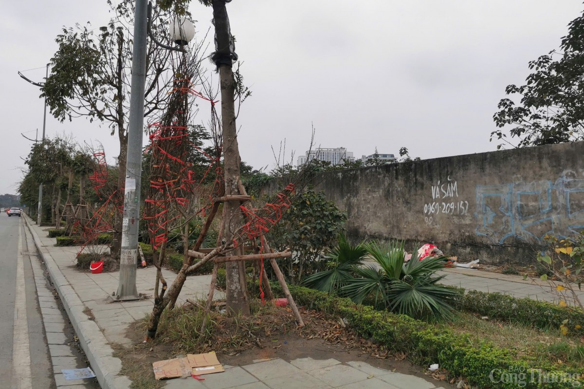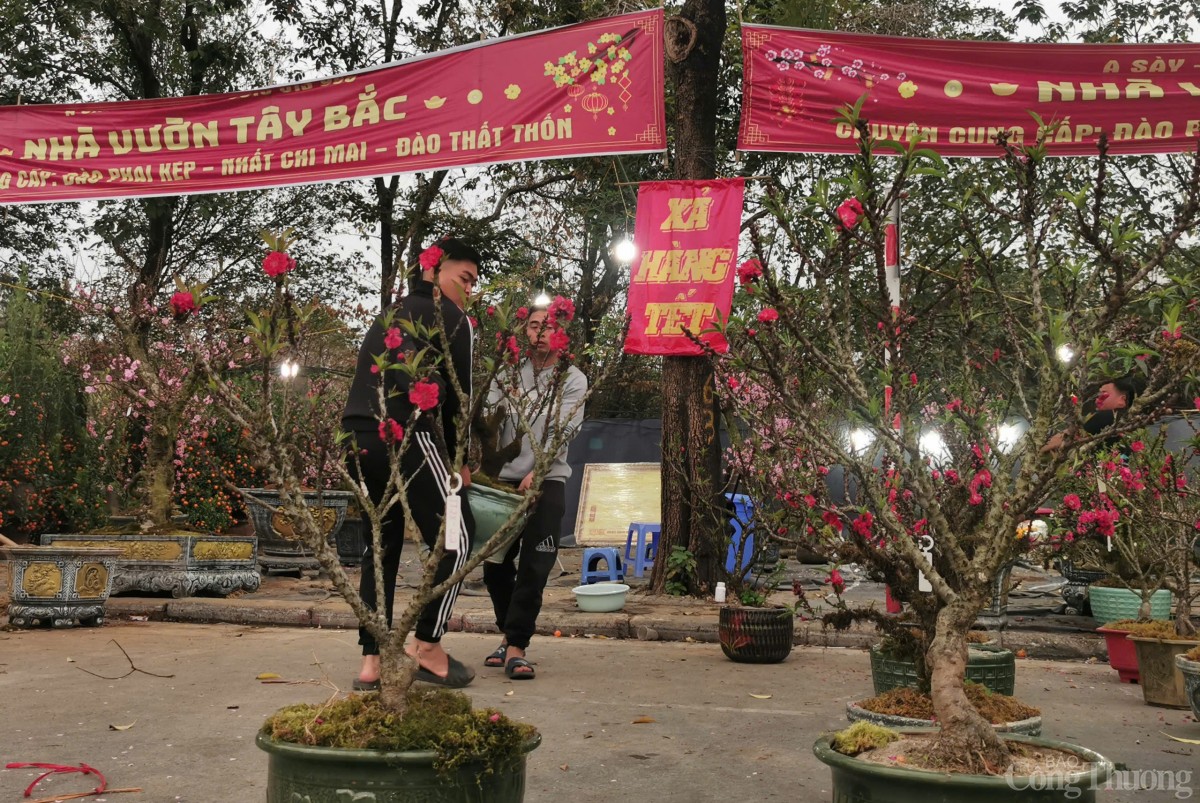 Dọc quốc lộ 32 thuộc thị trấn Trạm Trôi, huyện Hoài Đức; cây Tết vẫn còn nhiều ngập trên các vỉa hè khiến nhiều tiểu thương như “ngồi trên đống lửa”, một số điểm đã bắt đầu xả quất, xả đào và các loại cây khác để mong sớm hết hàng về nhà ăn Tết.