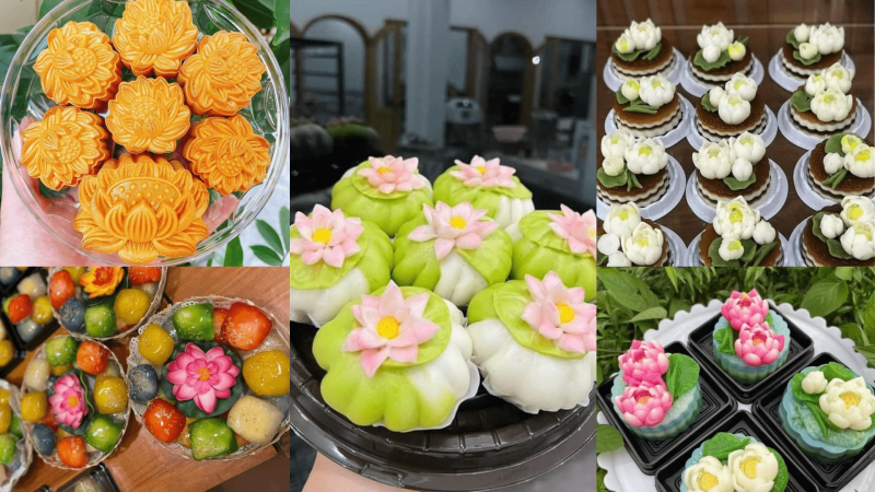 | Những set bánh ngọt hình hoa sen là sự lựa chọn số 1 của khách hàng trong ngày Rằm tháng Giêng. |