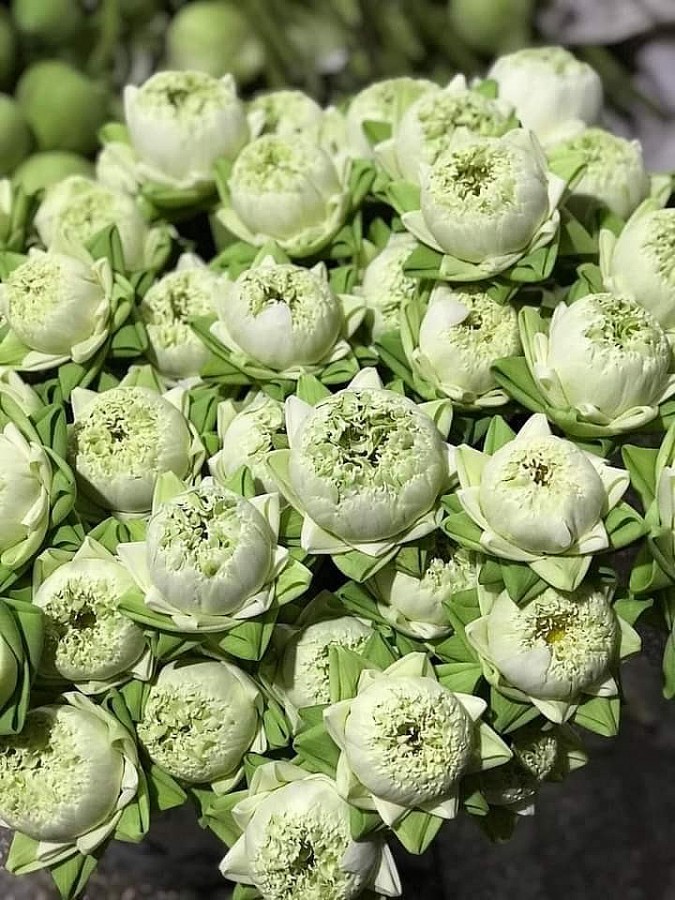 Chị Hà My, chủ tiệm hoa online chia sẻ: “Người tiêu dùng hiện đại luôn hướng đến những thứ hoàn hảo nhất, đặc biệt là những thứ trưng bày cho việc đi cúng lễ. Vì vậy, mẫu hoa sen gấp cánh kiểu Thái Lan tại cửa hàng đang được coi là best seller. Mỗi bông hoa trắng được gấp cánh, kèm đài hoa đang được bán với giá 20.000-30.000 đồng, đắt hơn khoảng 20% so với ngày bình thường.”