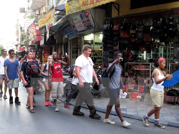 Khách du lịch quốc tế tham quan phố phường Hà Nội.