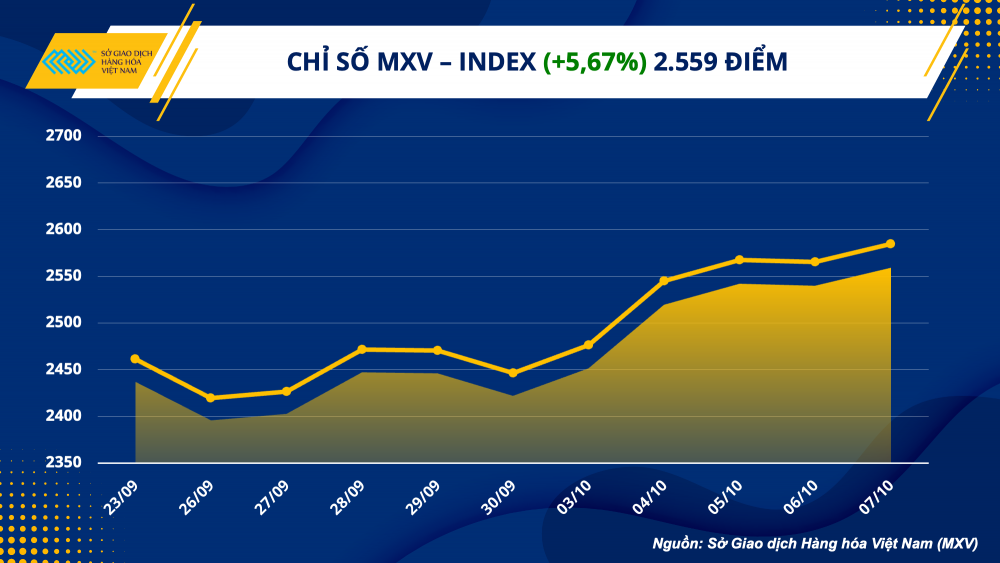 Theo Sở Giao dịch hàng hóa Việt Nam (MXV), dòng tiền đến thị trường có sự sụt giảm nhẹ trước tâm lý thận trọng của nhà đầu tư trong nước, giá trị giao dịch toàn Sở trung bình toàn đạt 4.100 tỷ đồng mỗi phiên. Đà tăng đến từ lực mua rất mạnh của nhiều mặt hàng quan trọng, mà đặc biệt là các hợp đồng xăng dầu. Đóng cửa tuần, nhiều mặt hàng ghi nhận các mức tăng vọt lớn nhất trong vòng nhiều tháng. Có thể kể đến, nhận hỗ trợ từ xu hướng của giá dầu, giá các mặt hàng dầu thực vật cũng ghi nhận những mức tăng rất mạnh. Dầu cọ Malaysia tăng vọt 12% sau 1 tuần, dầu đậu tương bật tăng hơn 8%.