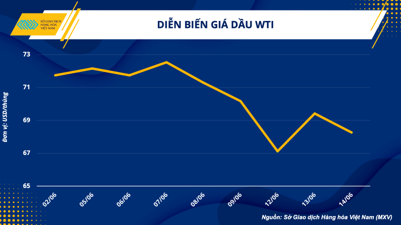 Theo Sở Giao dịch hàng hoá Việt Nam (MXV), sau khi đón nhận lực mua tích cực trong nửa đầu ngày giao dịch ngày 14/06, giá dầu đã đảo chiều giảm mạnh trở lại trong phiên tối và kết phiên trong sắc đỏ. Giá dầu WTI đánh mất mốc 70 USD/thùng, giảm 1,66% xuống 68,27 USD/thùng. Dầu Brent chốt phiên với mức giá 73,2 USD/thùng sau khi giảm 1,47%.