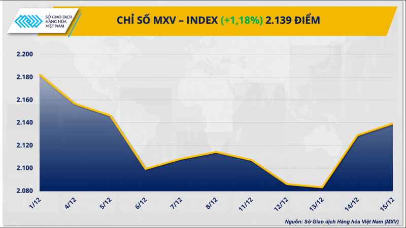 Số liệu từ Sở Giao dịch Hàng hóa Việt Nam (MXV) cho thấy, kết thúc tuần giao dịch 11-17/12, diễn biến khá phân hóa trên bảng giá hàng hoá nguyên liệu thế giới.