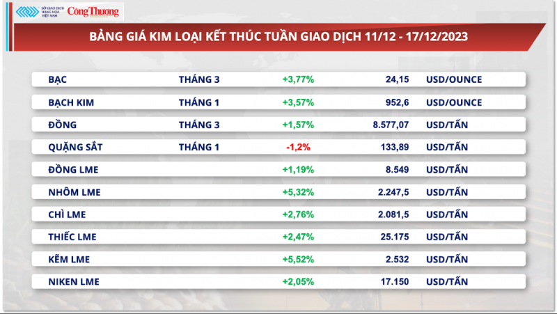 Thị trường hàng hoá hôm nay 18/12/2023: ​​​​​​​Sắc xanh bao trùm bảng giá kim loại
