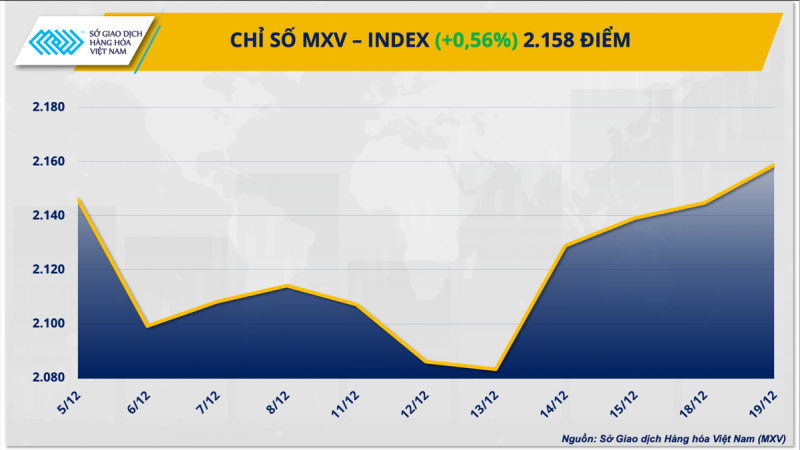 Tuy nhiên, lực mua có phần áp đảo đã kéo chỉ số MXV-Index tăng 0,65% lên 2.158 điểm. Giá trị giao dịch ở mức 5.579 tỷ đồng. Đáng chú ý, có 4 trên 5 mặt hàng nhóm năng lượng trong sắc xanh.