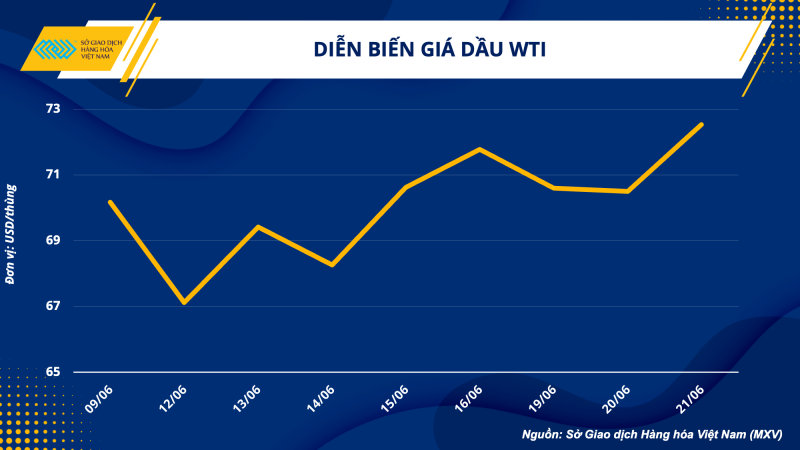 Theo Sở Giao dịch hàng hoá Việt Nam (MXV), giá dầu đã lấy lại đà tăng trong phiên giao dịch ngày 21/06, với dầu WTI đóng cửa cao nhất trong 2 tuần, đạt mức 72,53 USD/thùng sau khi tăng 1,88%. Giá dầu Brent tăng 1,61% lên mức 77,12 USD/thùng.