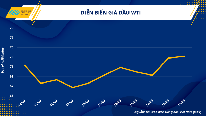 Theo Sở Giao dịch hàng hoá Việt Nam (MXV), giá dầu thô tiếp tục giữ vững sắc xanh trong bối cảnh nguồn cung vẫn đang gặp sức ép, tuy nhiên, mức tăng hạn chế hơn khi Tổ chức các nước xuất khẩu dầu mỏ và đồng minh (OPEC+) cho thấy nhiều khả năng sẽ chưa điều chỉnh hạn ngạch trong cuộc họp và ngày 03/04 sắp tới. Giá dầu WTI đã tăng 0.54% lên mức 73,2 USD/thùng, dầu Brent tăng 0,49% lên 78,14 USD/thùng.
