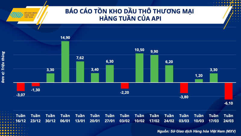 Rạng sáng nay theo giờ Việt Nam, báo cáo từ Viện Dầu khí độc lập Mỹ (API) cho thấy tồn kho dầu thô thương mại Mỹ giảm mạnh 6.1 triệu thùng, mức giảm trong tuần mạnh nhất kể từ tháng 12 năm ngoái. Tồn kho xăng cũng giảm mạnh 5.9 triệu thùng, cho thấy nhu cầu có sự cải thiện hơn so với các tuần trước đó. Thông tin này có thể sẽ tiếp tục hỗ trợ cho giá dầu trong phiên sáng và hướng tới mục tiêu tiếp theo tại mốc 75 USD/thùng đối với dầu WTI.