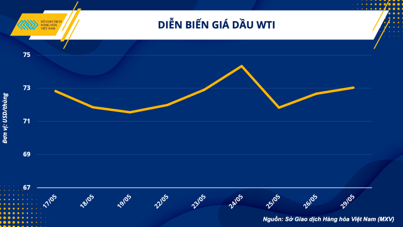 Theo Sở Giao dịch hàng hoá Việt Nam (MXV), giá dầu trải qua một phiên giao dịch đầy giằng co khi nhà đầu tư cân nhắc các tin tức xoay quanh vấn đề trần nợ công và khả năng tăng lãi suất của Cục Dự trữ Liên bang Mỹ (Fed). Kết thúc phiên 29/05, giá dầu thô WTI tăng 0,51% lên 73,04 USD/thùng, giá dầu thô Brent có mức tăng khiêm tốn hơn, chỉ 0,16% lên 77,10 USD/thùng.