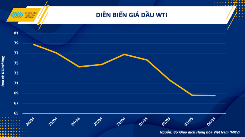 Theo Sở Giao dịch hàng hoá Việt Nam (MXV), hai loại dầu thô WTI và Brent diễn biến tương đối giằng co trong phiên trước khi kết thúc phiên ngày 04/05 với mức tăng giảm trái chiều. Cụ thể, giá dầu WTI giảm nhẹ 0,06% xuống 68,56 USD/thùng, trong khi dầu Brent tăng nhẹ 0,24% lên 72,5 USD/thùng.