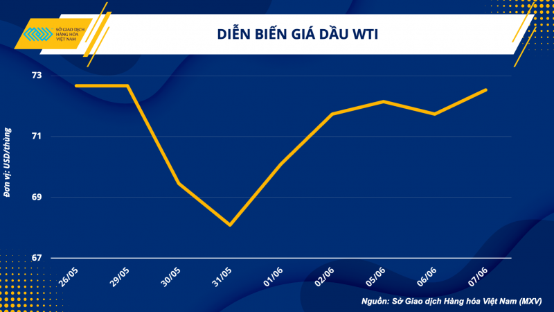 Theo Sở Giao dịch hàng hoá Việt Nam (MXV), giá dầu đã lấy lại đà tăng trong phiên giao dịch hôm qua ngày 07/06 khi các nhà đầu tư cảnh giác về tác động của việc cắt giảm sản lượng từ Tổ chức các nước xuất khẩu dầu mỏ và đồng minh (OPEC+), trong khi một vài tín hiệu tích cực hơn về nhu cầu cũng đã hỗ trợ giá dầu. Cụ thể, giá dầu WTI phục hồi với mức tăng 1,1% lên 72,53 USD/thùng và dầu Brent tăng 0,87% lên 76,95 USD/thùng.