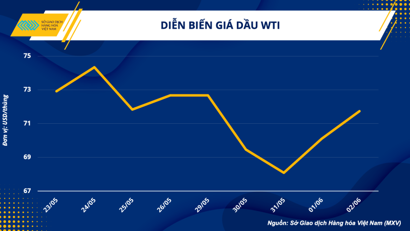 Theo Sở Giao dịch hàng hoá Việt Nam (MXV), mức giảm sâu của giá dầu vào ngày 30/05 đã khiến cho mặt hàng này kết thúc tuần giao dịch 29/05 – 04/06 trong sắc đỏ, bất chấp đà phục hồi mạnh mẽ trong 2 phiên cuối tuần. Cụ thể, giá dầu WTI giảm 1,28% xuống 71,74 USD/thùng và dầu Brent đóng cửa trên 76 USD/thùng, thấp hơn 1,1% so với tuần trước đó.