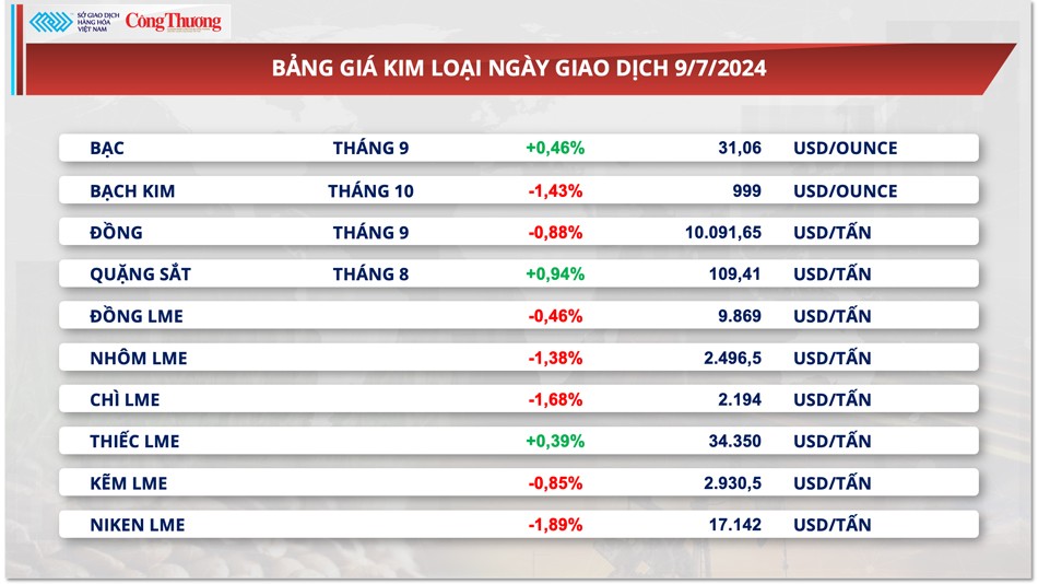 | Thị trường hàng hóa hôm nay ngày 8/7/2024: Giá hàng hoá nguyên liệu thế giới biến động mạnhThị trường hàng hóa hôm nay ngày 9/7/2024: Giá ngô giảm xuống mức thấp nhất trong 4 năm |