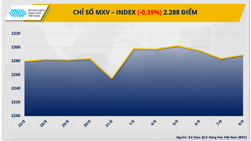 Theo Sở Giao dịch Hàng hóa Việt Nam(MXV), thị trường hàng hóa nguyên liệu thế giới vừa trải qua một tuần giao dịch giằng co với sự phân hóa ở nhiều nhóm mặt hàng quan trọng. Chỉ số MXV-Index đóng cửa tuần giảm 0,4% xuống 2.288 điểm, giá trị giao dịch toàn sở cũng sụt giảm xuống còn 3.200 tỷ đồng mỗi phiên, phản ánh tâm lý thận trọng của các nhà đầu tư trong nước trước diễn biến thị trường.