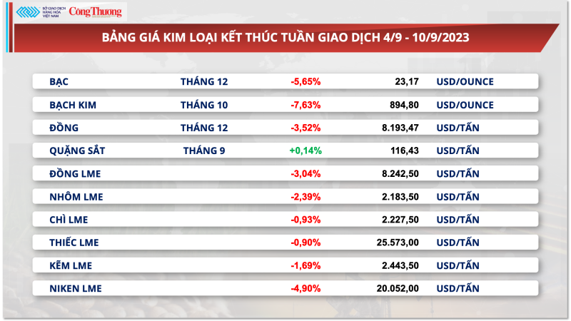 | Tuần giao dịch 4 - 11/9, bảng giá thị trường kim loại chìm trong sắc đỏ |