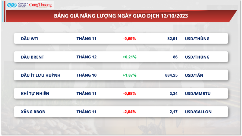 | Thị trường hàng hóa hôm nay ngày 11/10/2023: Chỉ số MXV-Index quay đầu giảm nhẹ 0,36%Thị trường hàng hóa hôm nay ngày 12/10/2023: Đã 6 ngày giá hàng hoá nguyên liệu chìm trong sắc đỏ |