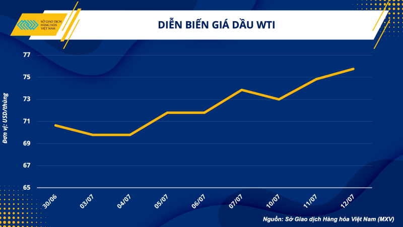 Theo Sở Giao dịch hàng hoá Việt Nam (MXV), thị trường hàng hoá hôm nay ngày 13/7/2023 diễn biến như sau: Tiếp nối đà phục hồi trong phiên giao dịch ngày 12/07, giá dầu đóng cửa phiên tại mức giá cao nhất kể từ đầu tháng 5. Cụ thể, giá dầu WTI tăng 1,23% lên mức 75,75 USD/thùng. Dầu Brent vượt mốc 80 USD/thùng sau khi tăng 0,89%.