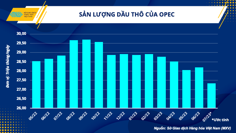 Sự cắt giảm nguồn cung của Saudi Arabia đã kéo theo mức dự đoán giảm khoảng 840.000 thùng dầu/ngày đối với tổng sản lượng dầu thô của Tổ chức các nước xuất khẩu dầu mỏ (OPEC) trong tháng 7, ước tính đạt mức 27,34 triệu thùng/ngày, mức thấp nhất kể từ tháng 9/2021.