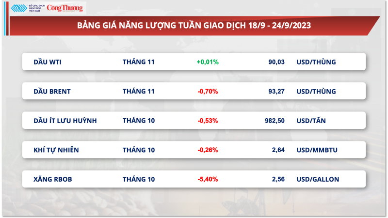 | Thị trường hàng hóa hôm nay ngày 21/9/2023: Dầu WTI mất mốc 90 USD/thùng, giá đậu tương hồi phụcThị trường hàng hóa hôm nay ngày 22/9, giá đậu tương rơi xuống đáy, sắc đỏ phủ kín bảng giá kim loại |