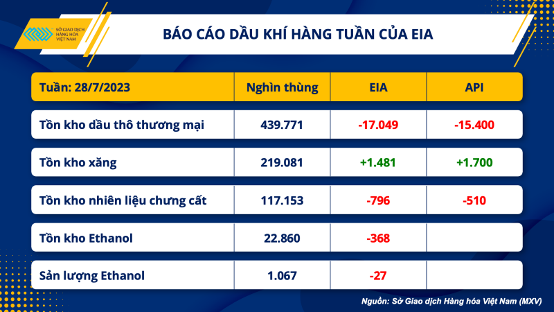 Các thông tin này đã hoàn toàn lấn át tác động của báo cáo hàng tuần từ Cơ quan quản lý Thông tin Năng lượng Mỹ (EIA), khi công bố tồn kho dầu thô thương mại Mỹ giảm hơn 17 triệu thùng trong tuần kết thúc ngày 28/07, đánh bại dự báo của thị trường và cao hơn dữ liệu từ Viện dầu khí Mỹ (API).