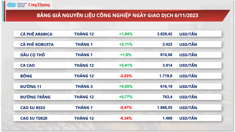 | Thị trường hàng hóa hôm nay ngày 3/11/2023: Giá dầu cắt chuỗi giảm 3 ngày, kim loại tăng giáThị trường hàng hóa hôm nay ngày 6/11/2023: Giá dầu trượt dốc kéo chỉ số hàng hóa suy yếu |