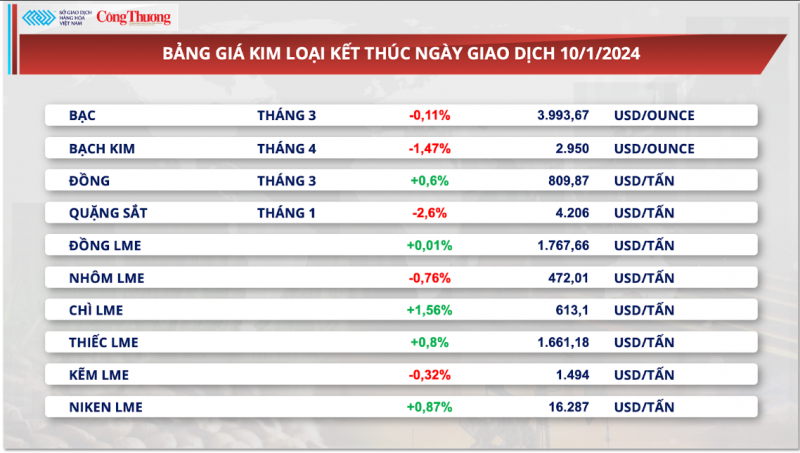 | Thị trường hàng hóa ngày 9/1/2024: Giá dầu lao dốc, giá ngô rơi xuống sát vùng đáy trong 3 nămThị trường hàng hóa ngày 10/1/2024: Giá hàng hóa nguyên liệu thế giới tiếp tục đảo chiều đi lên |