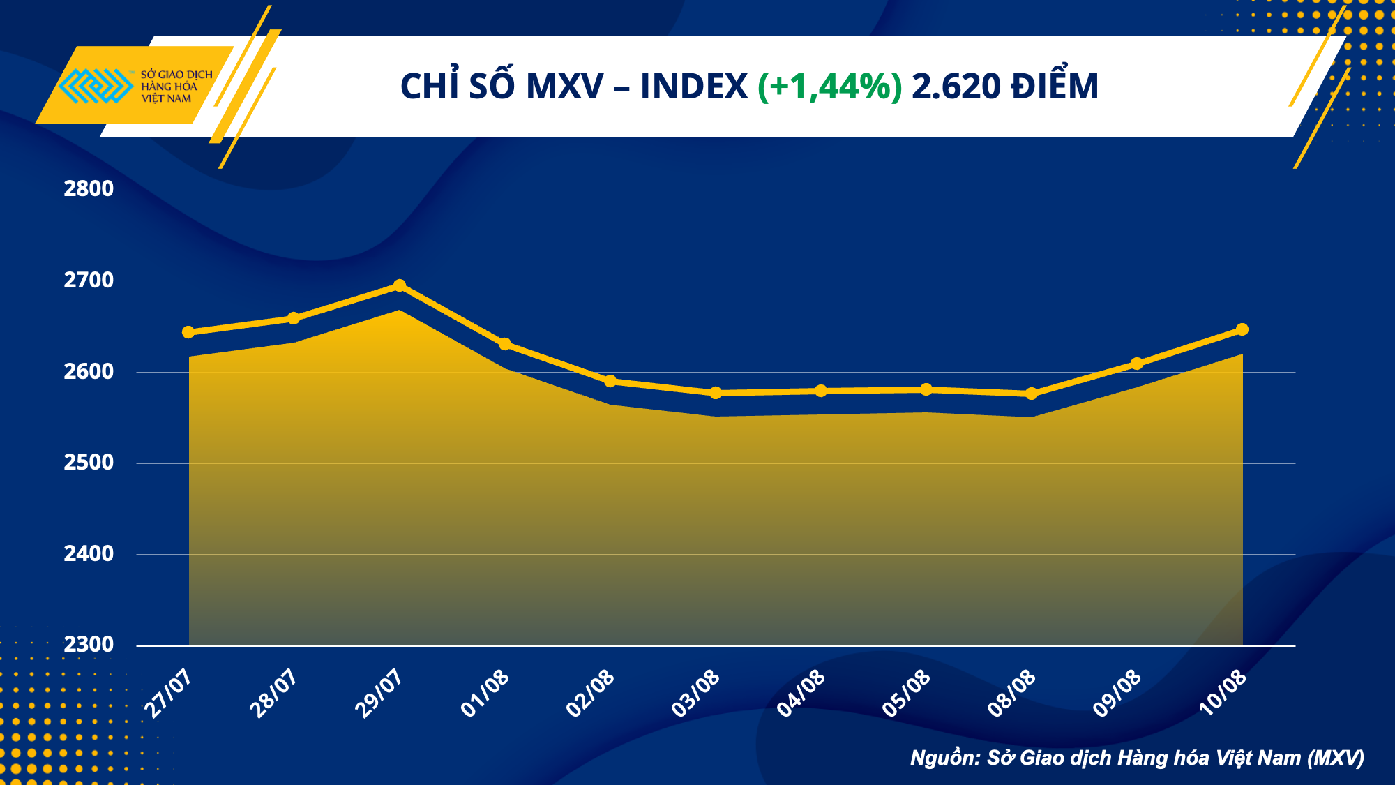 Theo Sở Giao dịch Hàng hóa Việt Nam (MXV), thị trường hàng hóa hôm nay dòng tiền đầu tư đã được phân bổ mạnh mẽ và đồng đều hơn vào các nhóm nông sản, kim loại và năng lượng. Điều này không chỉ giúp chỉ số MXV-Index ghi nhận mức tăng 1,44% lên 2.620 điểm, mà còn giúp giá trị giao dịch toàn Sở bật tăng 10%, đạt mức hơn 3.800 tỷ đồng.