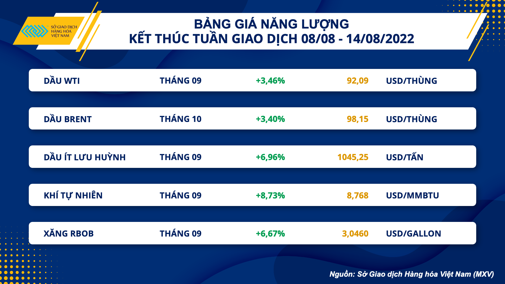 Dầu thô phục hồi trong tuần vừa qua khi các tin tức hỗ trợ cho giá xuất hiện nhiều hơn và sức ép từ các yếu tố vĩ mô giảm bớt. Kết thúc tuần, hợp đồng dầu thô WTI kỳ hạn tháng 9 ghi nhận đà tăng 3,46% lên 92,09 USD/thùng, trong khi hợp đồng dầu thô Brent kỳ hạn tháng 10 cũng tăng 3,40% lên 98,15 USD/thùng.