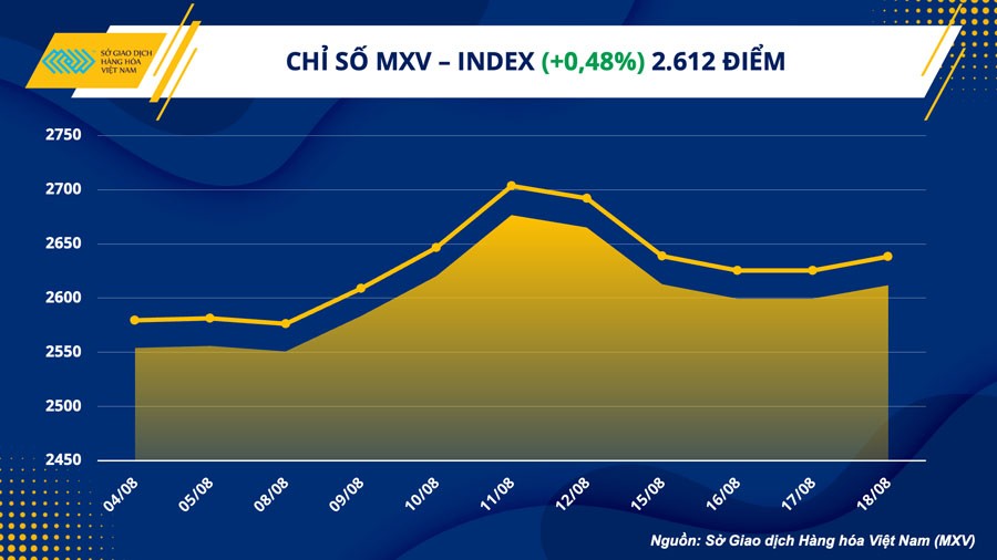 Các mặt hàng đang được giao dịch liên thông thế giới tại Sở Giao dịch Hàng hóa Việt Nam (MXV) cho thấy những diễn biến tương đối trái chiều. Tuy nhiên, lực mua mạnh mẽ trên thị trường năng lượng đã giúp chỉ số MXV-Index tăng 0,48% lên mức 2.612,09 điểm.