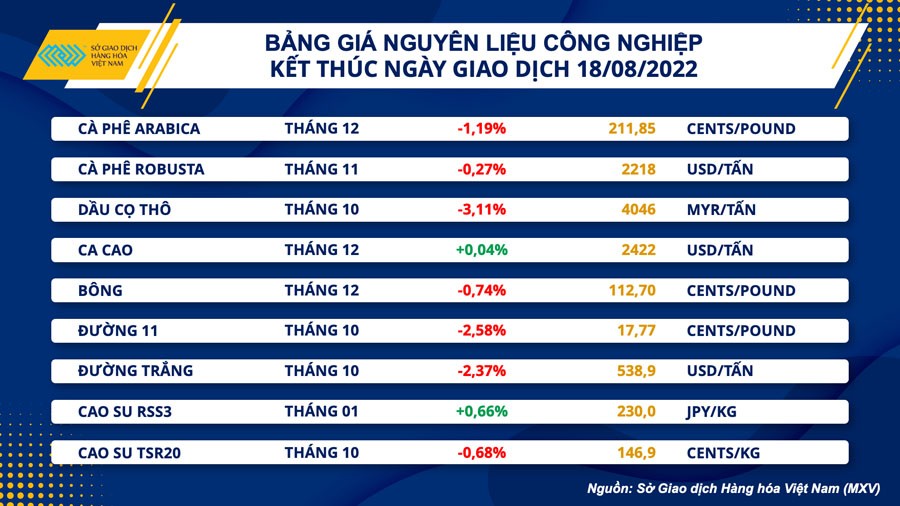 Hai mặt hàng đường cũng đồng loạt giảm mạnh trong phiên hôm qua, đóng cửa, đường 11 giảm 2,58% và đường trắng giảm 2,37%. Nguyên nhân chính lý giải cho điều này vẫn tiếp tục do việc điều chỉnh giảm giá xăng dầu từ phía Petrobras, điều này dự kiến sẽ đẩy giá xăng tại Brazil tiếp tục lao dốc sau 2 lần giảm trong tháng trước cũng nhờ việc hạ giá xăng dầu tại tập đoàn này. Bên cạnh đó, nhập khẩu đường trong tháng 07 tại Trung Quốc, quốc gia tiêu thụ và nhập khẩu mặt hàng này lớn nhất thế giới, giảm 35,2% so với cùng kỳ năm ngoái trong bối cảnh nguồn cung vẫn liên tục được nới lỏng, được xem là nhân tố quan trọng đẩy giá đường suy yếu.