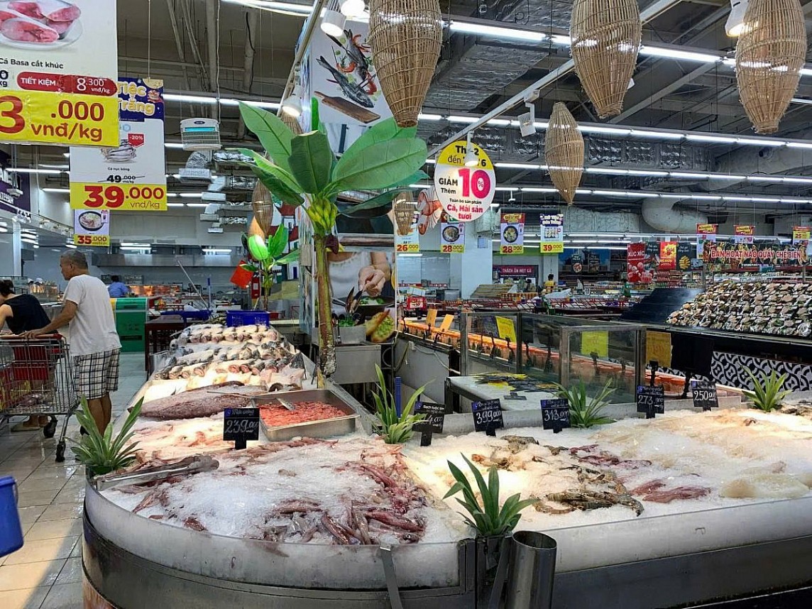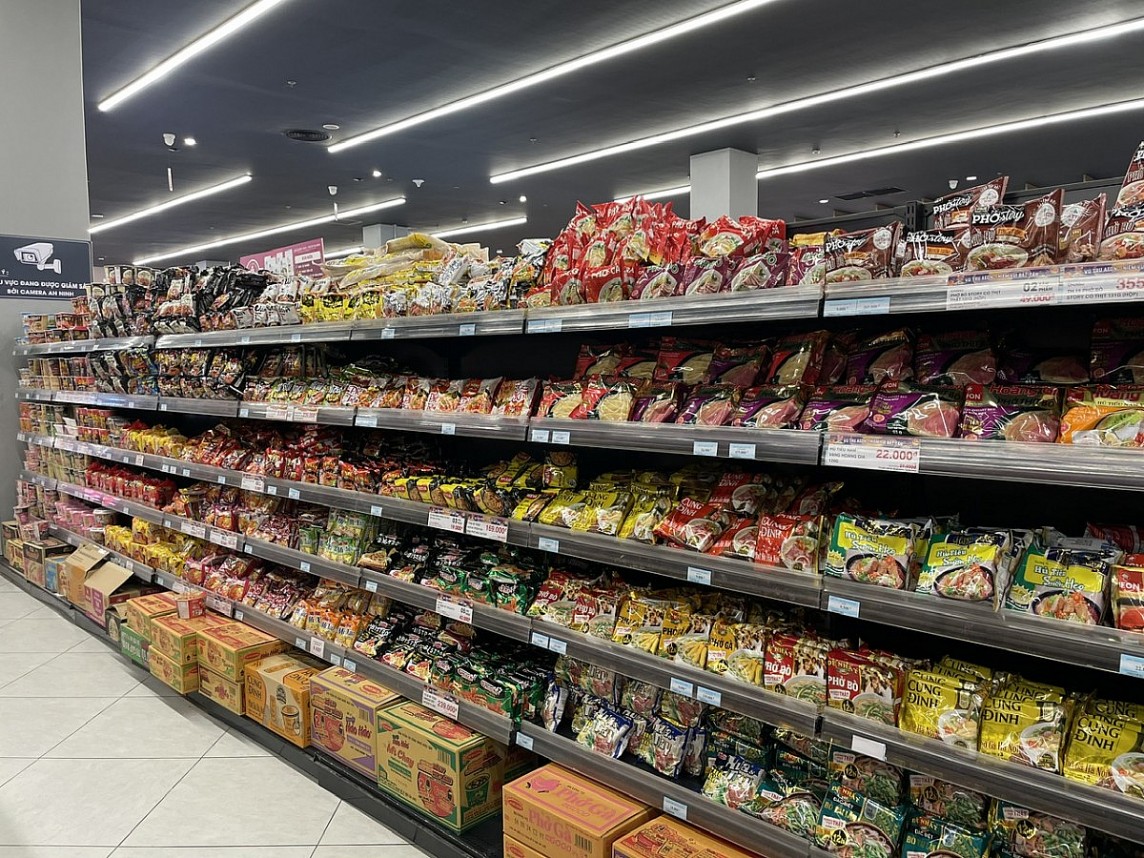 | Các mặt hàng như thịt, cá, hải sản, rau củ quả, mỳ ăn liền... rất dồi dào tại các kênh phân phối (Ảnh cập nhật từ siêu thị tại các địa phương Hà Nội, Hải Phòng, Quảng Ninh...) |